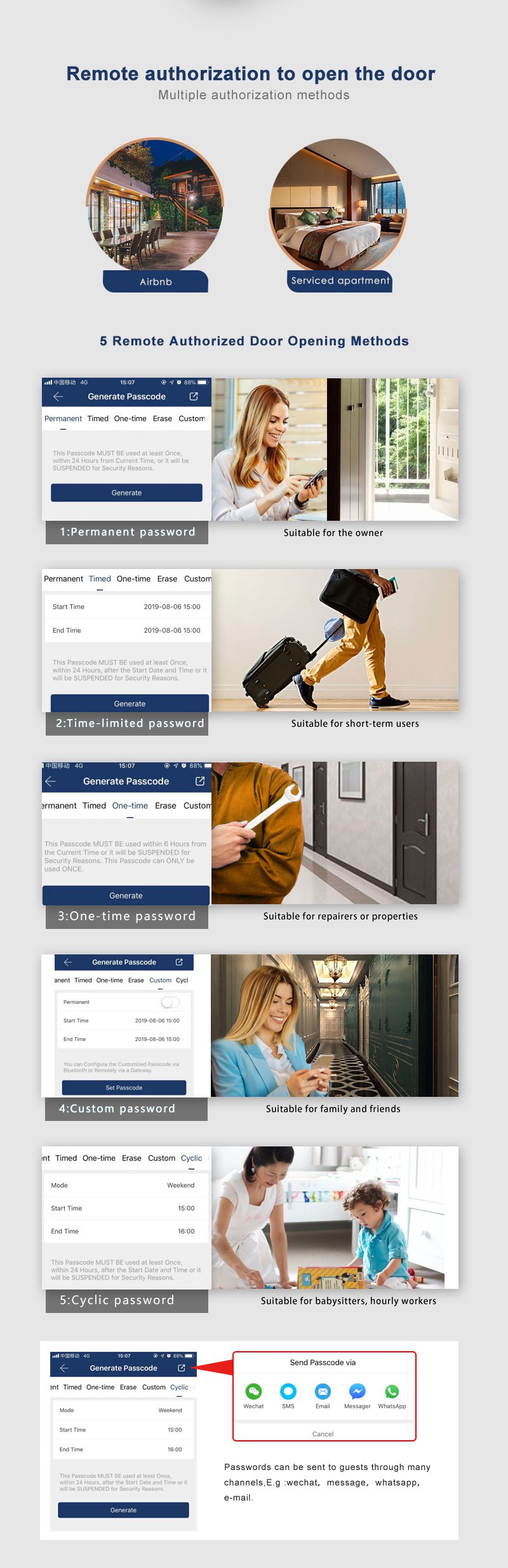 - Unlock WaysFingeprint, Password, Card,Key, Bluetooh(BLE4.1 and above), APP
