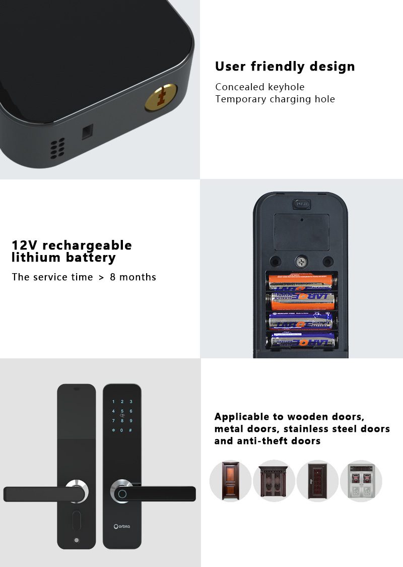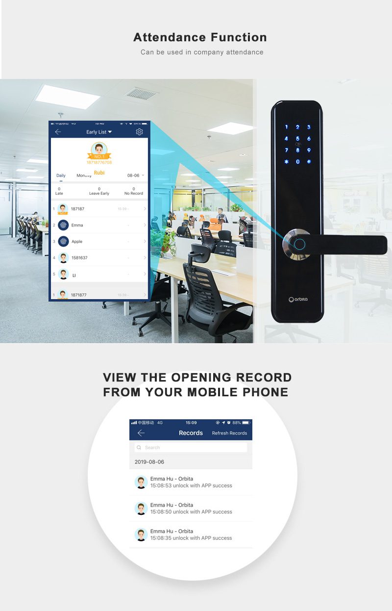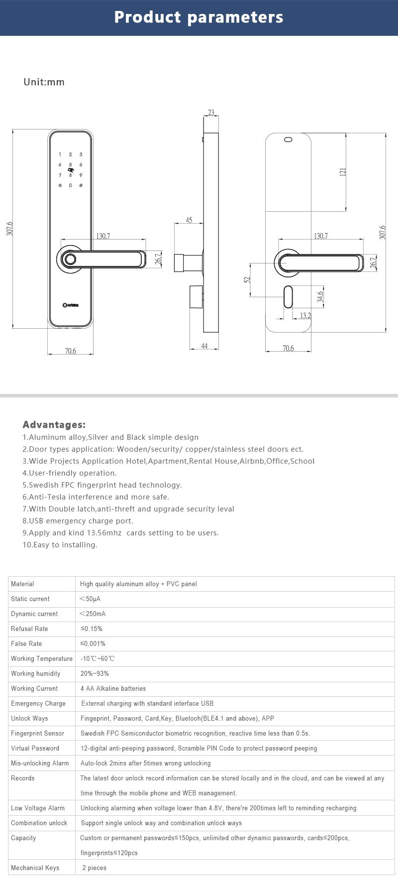 Unlock WaysFingeprint, Password, Card,Key, Bluetooh(BLE4.1 and above), APP