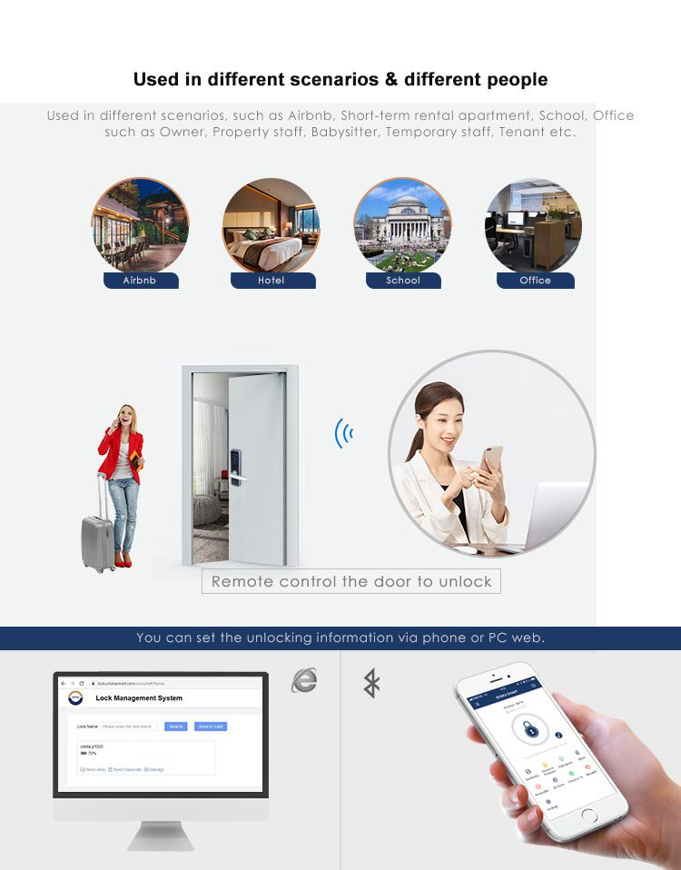 Unlock Ways Password, Card,Key, Bluetooh(BLE4.1 and above), APP